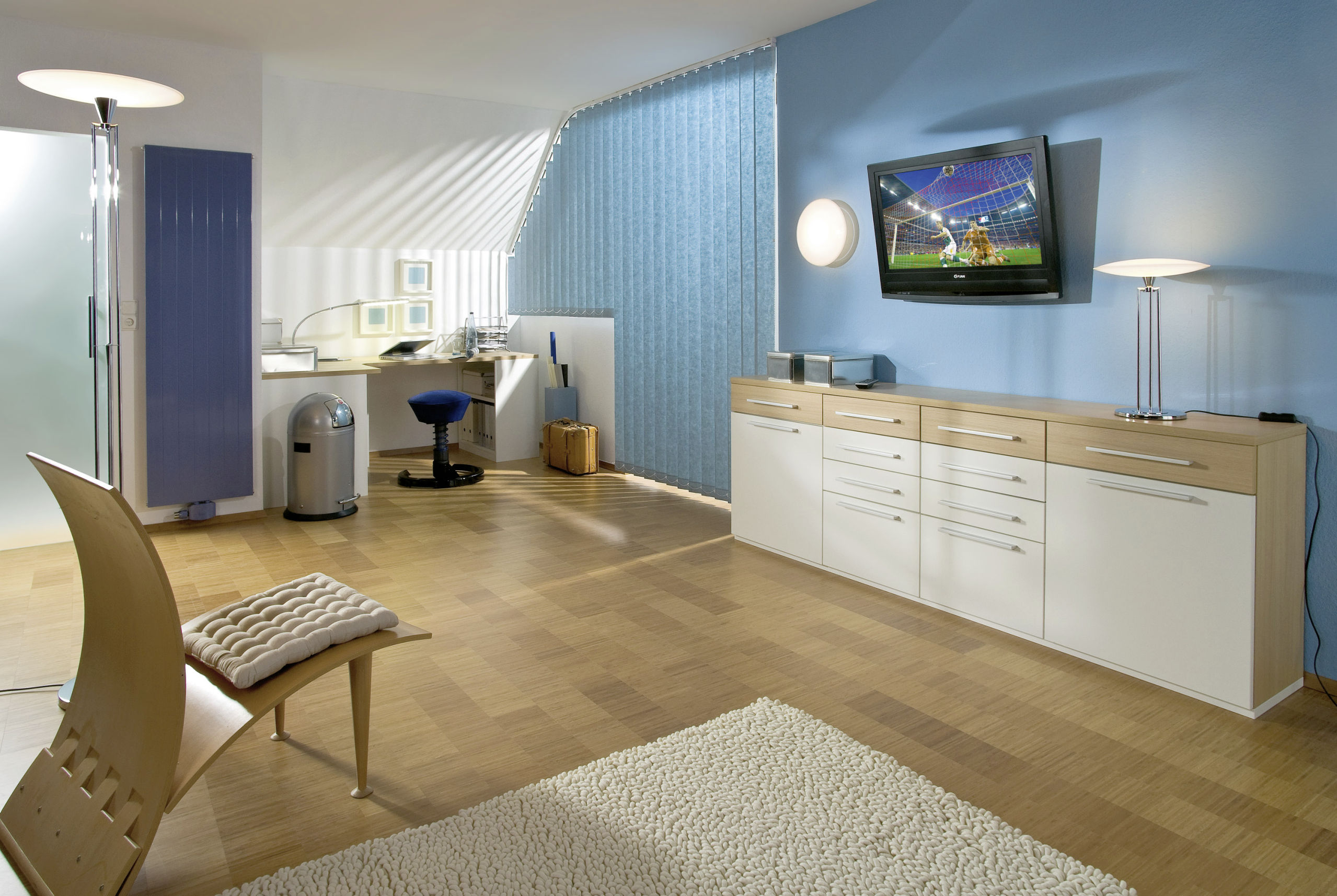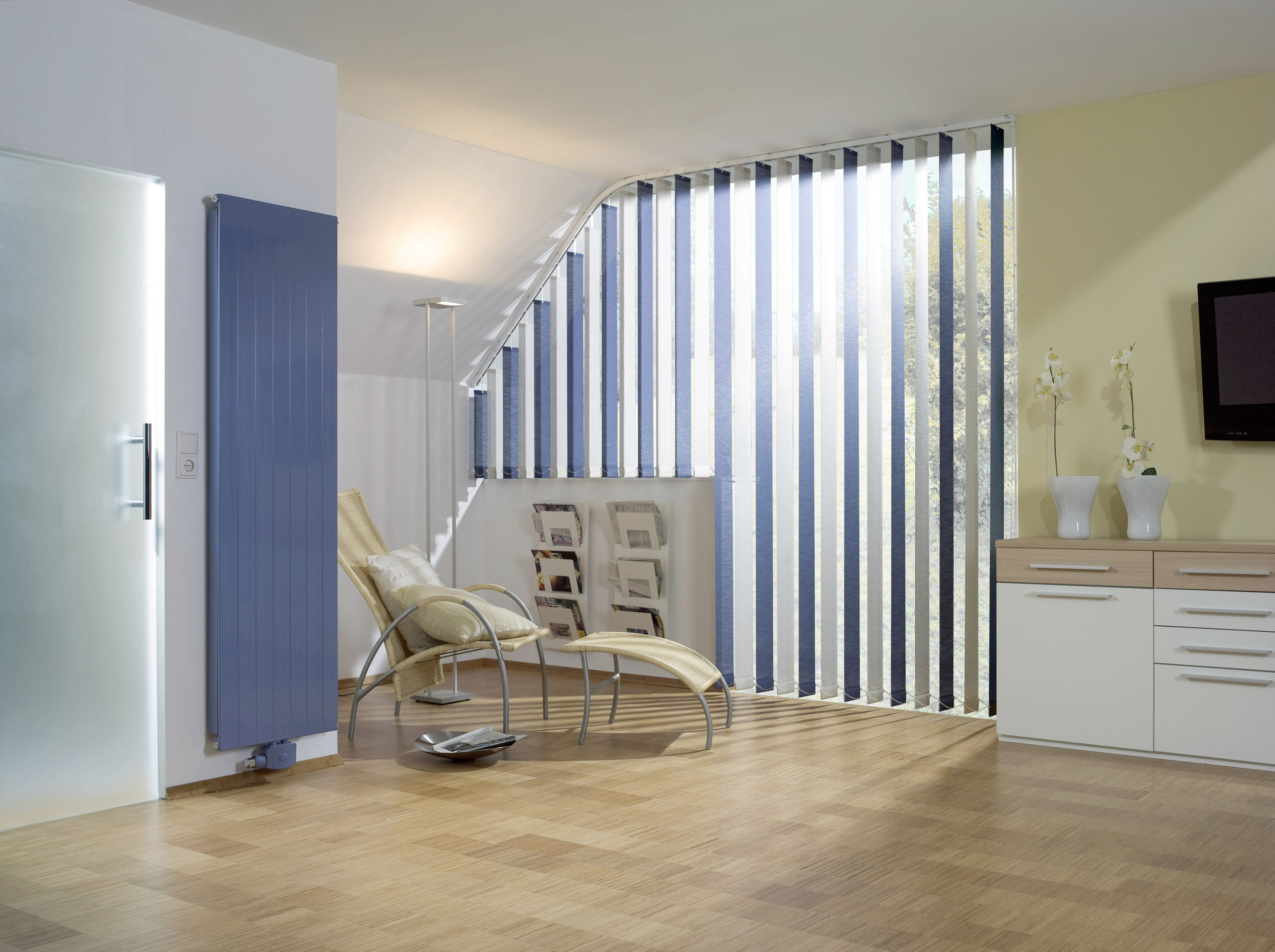 der Lamellenstore – auf Lamellenvorhang oder Vertikal-Jalousie genannt – machen auch im privaten Bereich einen guten Eindruck: Früher lediglich in öffentlichen Bereichen eingesetzt, erobern sie langsam auch die eigenen vier Wände zu Hause und wirken besonders in einer Kombination mit Dekorationsstoffen sehr elegant. In vielen verschiedenen Farben und Dessins sowie in den Lamellenbreiten 89, 127 und 250 mm erhältlich, schützen sie vor zu viel Sonne, ohne jedoch das Tageslicht komplett auszusperren.
